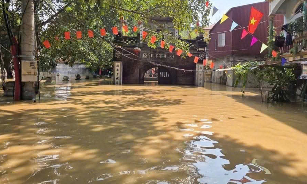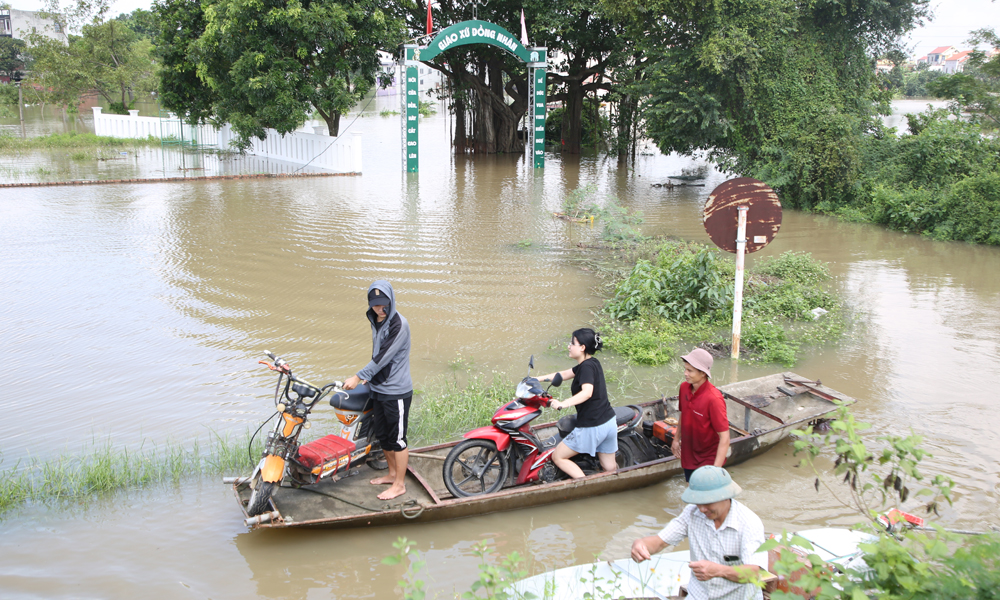 Tổ dân phố Thổ Hà, phường Vân Hà hiện vẫn bị nước lũ ngập sâu, hàng trăm hộ dân bị cô lập.